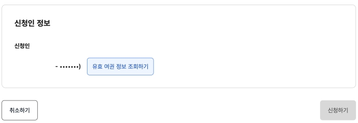 2. 신청인 정보가 뜨면 유효 여권 정보 조회하기를 눌러주세요.