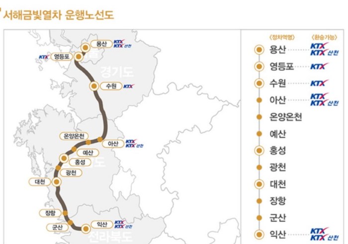 - 홍성 = 광천 - 대천 - 장항 - 군산 - 익산