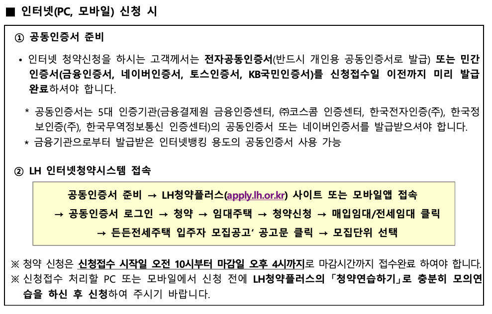 입주 신청은 인터넷을 통해 진행되므로 아래의 LH 청약플러스 홈이나 아래 첨부한 모집공고를 통해 자세한 사항 확인해 보시기 바랍니다.