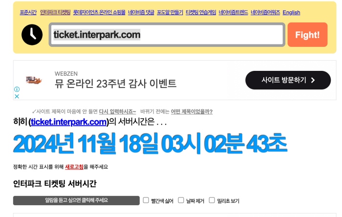 인터파크티켓 서버 시간 확인
