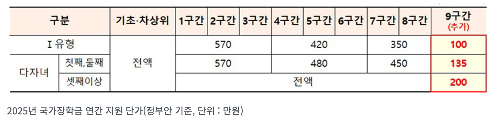 - 신입생, 편입생 : 성적 요건 없음! 첫 학기는 소득 분위 기준으로만 지급됩니다.